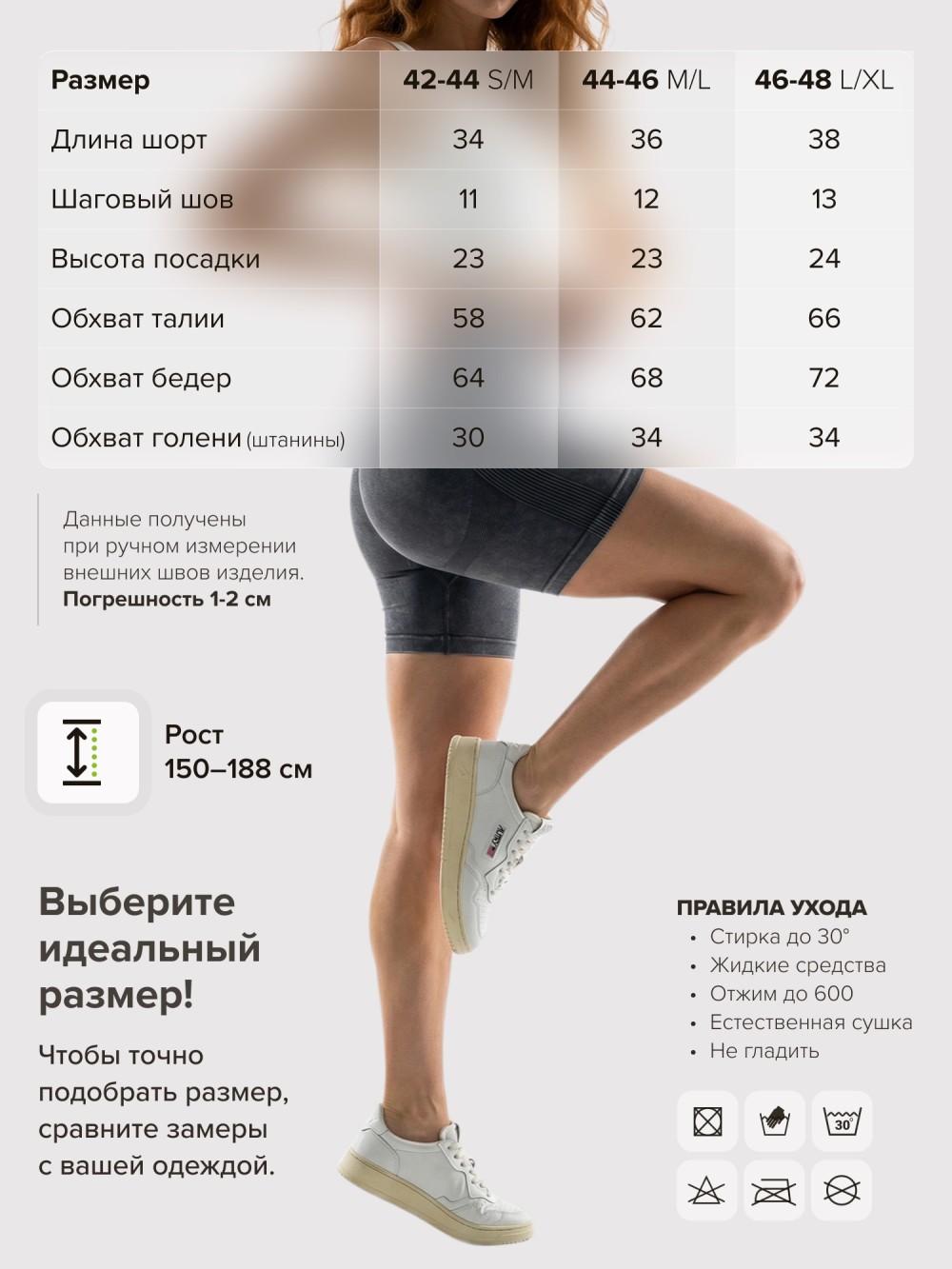 Размер Длина шорт Шаговый шов Высота посадки Обхват талии Обхват бедер Обхват голени (штанины)