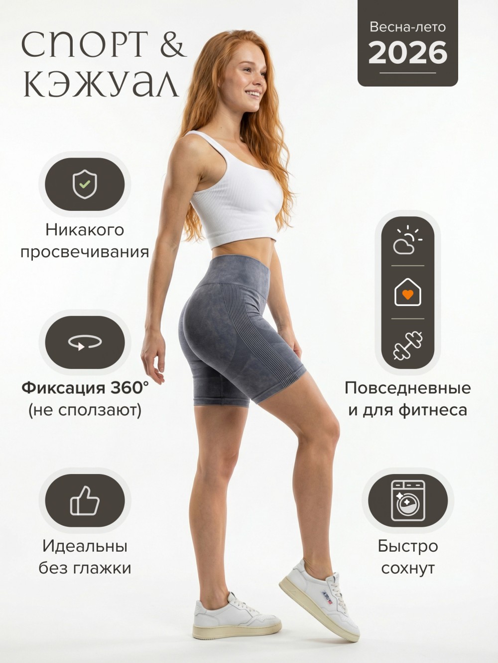 Женские велосипедки с вареным эффектом — актуальная модель весенне-летнего сезона. Современная фактура ткани придает изделию стильный и выразительный внешний вид.