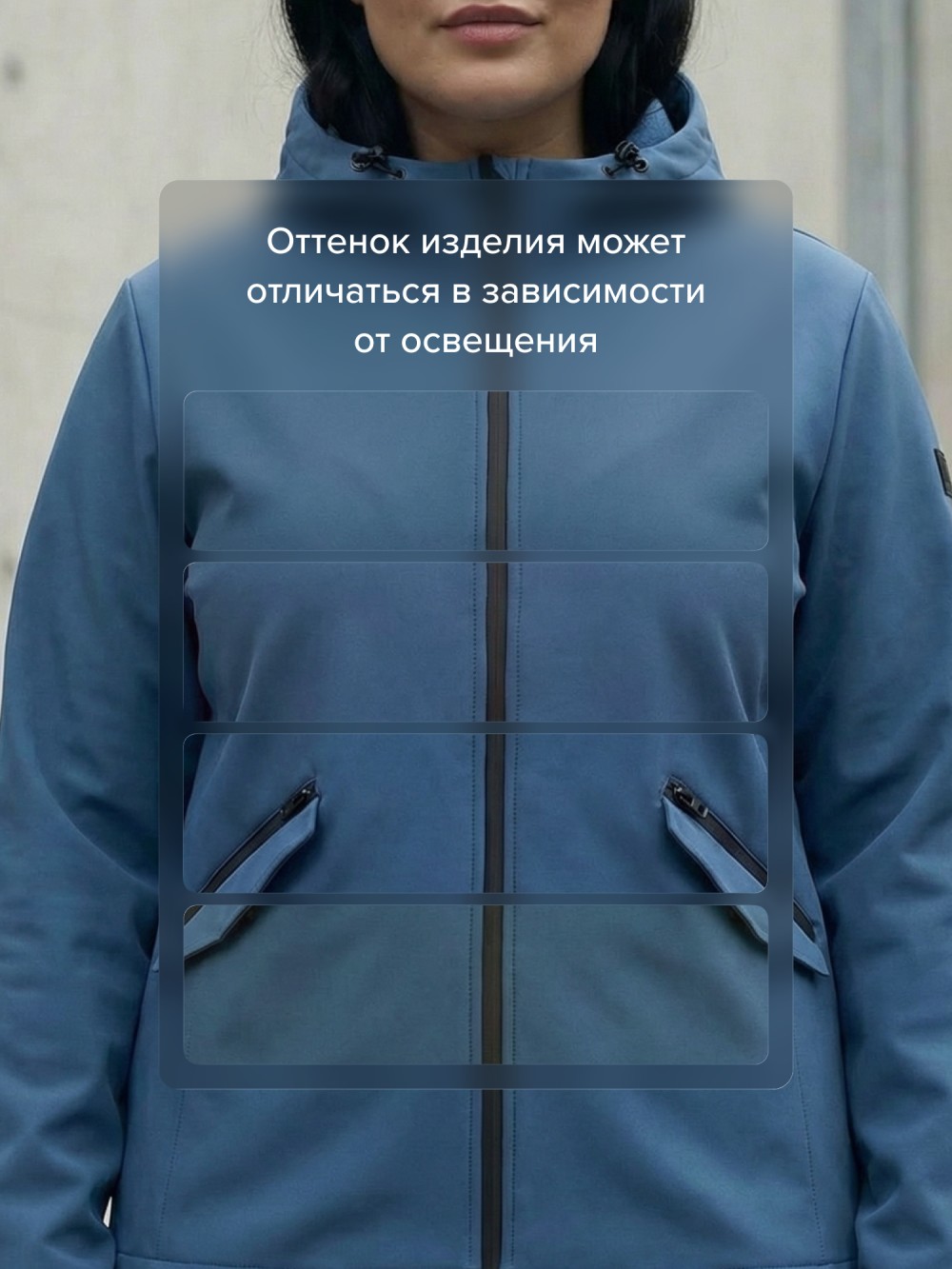 Ткань плотная, эластичная и приятная на ощупь, хорошо держит форму и не сковывает движения. Ветрозащитная мембрана защищает от холодного воздуха, а водоотталкивающая пропитка помогает справляться с легким дождём и влагой.