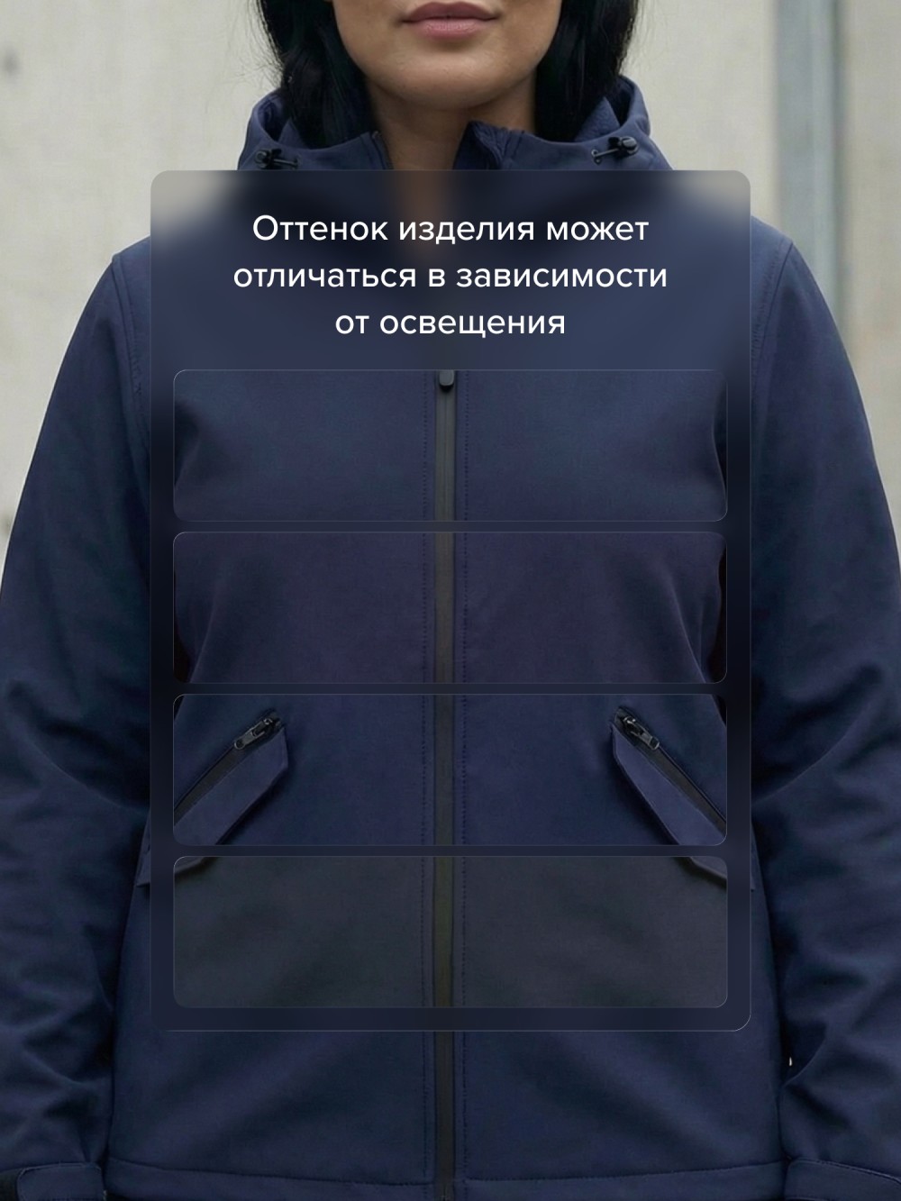 Ветровка женская софтшелл большого размера с капюшоном ветрозащитная темно-синего цвета 9620_1TS